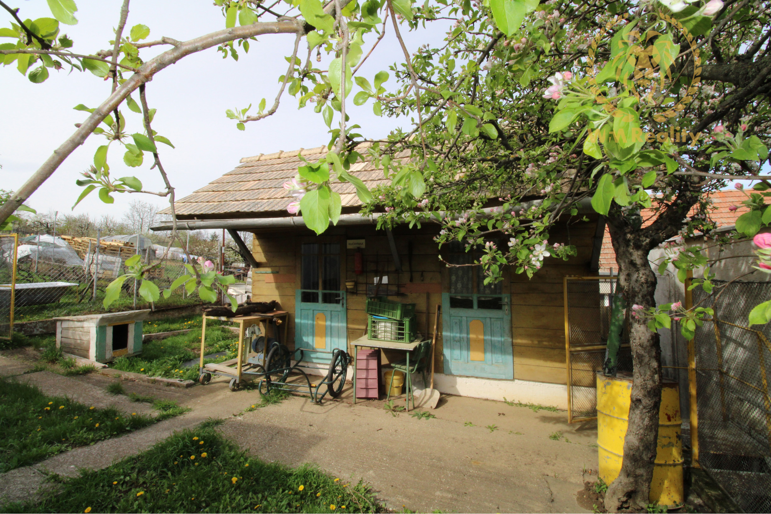 -záhrada s množstvom ovocných stromov ako jablone, marhule, slivky, vinohrad, egreše, ríbezle....